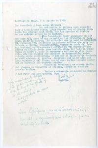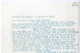 [Carta] 1962 agosto 8, Santiago de Chile [a] Tan recordado y buen amigo Abraham [manuscrito] Matilde [Ladrón de Guevara].