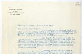 [Carta] 1962 octubre 1, Santiago de Chile [a] Tan querido Hugo Emilio [manuscrito] / Matilde [Ladrón de Guevara]. 1 hoja ; 28 cm. .