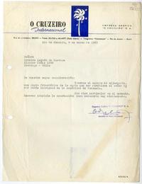 [Carta] 1963 marzo 8, Río de Janeiro [a] Matilde Ladrón de Guevara, Santiago, Chile [manuscrito] / Empresa Gráfica O Cruzeiro. 1 hoja ; 29 cm. .