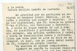 [Carta] [1962, Nueva York] [a] La poeta Señora Matilde Ladrón de Guevara [manuscrito] / Primo Castrillo. 1 hoja ; 15 cm. .