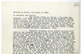 [Carta] 1963 agosto 5, Santiago de Chile [a] Mi recordado Hugo Emilio [manuscrito] Matilde [Ladrón de Guevara].