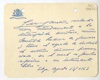 [Carta] 1963 agosto 13, Santiago [a] Matilde Ladrón de Guevara [manuscrito] 1 hoja ; 12 x 15 cm. .