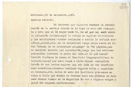 [Carta] 1963 septiembre 20, Maldonado, [Uruguay] [a] Querida Matilde [manuscrito] / Hugo Emilio. 1 hoja ; 29 cm. .
