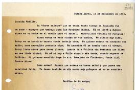 [Carta] 1963 diciembre 17, Buenos Aires [a] Querida Matilde [manuscrito] Eva [Vastari].