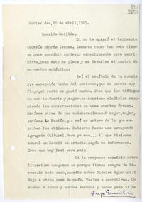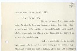 [Carta] 1965 abril 20, Montevideo [a] Querida Matilde [manuscrito] Hugo Emilio.