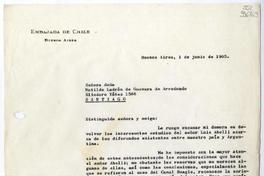 [Carta] 1965 junio 1, Buenos Aires [a] Matilde Ladrón de Guevara de Arredondo, Santiago [manuscrito] Hernán Videla Lira.