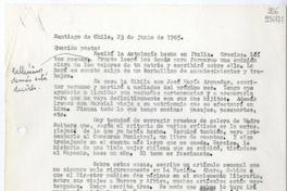 [Carta] 1965 junio 23, Santiago de Chile [a] Querido poeta [manuscrito] Matilde [Ladrón de Guevara].
