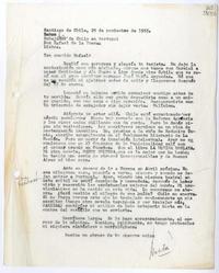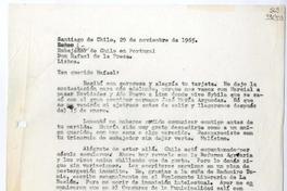 [Carta] 1965 noviembre 29, Santiago de Chile [a] Excmo Señor Embajador de Chile en Portugal Don Rafael de la Presa, Lisboa [manuscrito] Matilde [Ladrón de Guevara].