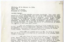[Carta] 1966 febrero 25, Santiago [a] Señor Don Rafael de la Presa, Embajada en Portugal [manuscrito] Matilde [Ladrón de Guevara].