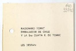 [Tarjeta] 1966 diciembre, Washington D. C. [a] Matilde Ladrón de Guevara [manuscrito] / Radomiro Tomic. 1 tarjeta ; 14 cm. .