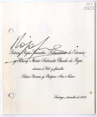 [Tarjeta] 1966 diciembre Santiago [a] Matilde Ladrón de Guevara [manuscrito] / Patricio Rojas Saavedra. 1 tarjeta ; 14 cm. .