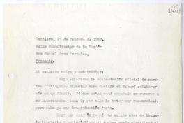 [Carta] 1967 febrero 15, Santiago [a] Señor Sub-Director de La Nación Don Manuel Cruz Portales [manuscrito] / Matilde [Ladrón de Guevara]. 1 hoja ; 27 cm. .
