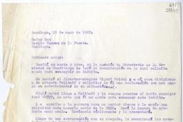 [Carta] 1967 mayo 29, Santiago, Chile [a] Señor Don Sergio Vásquez de la Fuente, Santiago [manuscrito] / Matilde [Ladrón de Guevara]. 1 hoja ; 27 cm. .