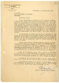 [Carta] 1967 septiembre 2, Santiago [a] Matilde Ladrón de Guevara [manuscrito] Sergio Vásquez de la Fuente.