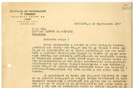 [Carta] 1967 septiembre 2, Santiago [a] Matilde Ladrón de Guevara [manuscrito] / Sergio Vásquez de la Fuente. 1 hoja. ; 29 cm. .