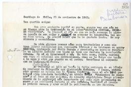 [Carta] 1967 noviembre 21, Santiago de Chile [a] Tan querida amiga [manuscrito] Matilde [Ladrón de Guevara].