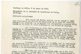 [Carta] 1968 enero 8, Santiago de Chile [a] Directorio de la Sociedad de Escritores de Chile, Santiago [manuscrito] Matilde [Ladrón de Guevara].