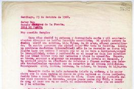[Carta] 1968 octubre 23, Santiago [a] Sergio Vásquez de la Fuente, Isla de Pascua [manuscrito] / Matilde [Ladrón de Guevara]. 1 hoja ; 33 cm. .