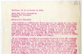 [Carta] 1968 noviembre 13, Santiago [a] Señor Don Julio Lanzarotti, Revista del Domingo [manuscrito] Rolf Wilckens.