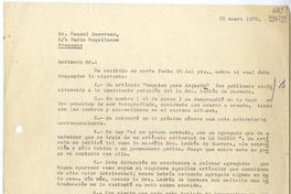 [Carta] 1970 enero, Santiago, Chile [a] Matilde [Ladrón de Guevara] [manuscrito] / Manuel Zamorano. 1 hoja ; 27 cm. .