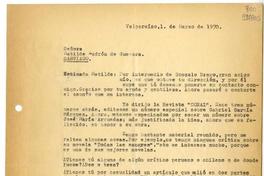 [Carta] 1970 marzo 1, Valparaíso [a] Matilde Ladrón de Guevara, Santiago [manuscrito]. 1 hoja ; 27 cm. .