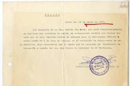 Acusa recibo de los libros donados por Matilde a la biblioteca de Isla de Pascua.