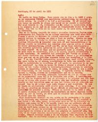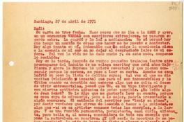 [Carta] 1971 abril 27, Santiago [a] Raúl [manuscrito] Matilde [Ladrón de Guevara].