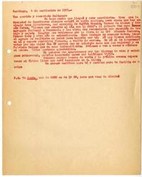 Carta de asuntos relacionados con la Sociedad de Escritores de Chile.