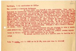 [Carta] 1971 septiembre 4, Santiago [a] Tan querido y recordado Baltazar [manuscrito] [Matilde Ladrón de Guevara].