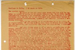 Carta donde comenta la situación política que se vive en Chile, además comenta de su trabajo y realiza otras reflexiones de índole personal.