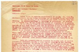 [Carta] 1972 junio 2, Santiago [a] Señor Baltazar Castro, Rancagua [manuscrito] Matilde Ladrón de Guevara.