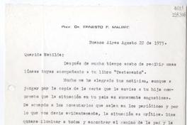 [Carta] 1973 agosto 22, Buenos Aires [a] Querida Matilde [manuscrito] Tu amiga Mabel.