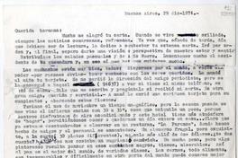 [Carta] 1974 diciembre 29, Buenos Aires [a] Querida hermana [manuscrito] [Matilde Ladrón de Guevara].