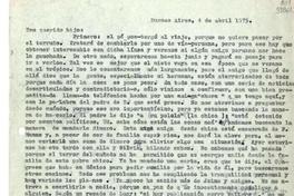 [Carta] 1975 abril 4, Buenos Aires [a] Tan querido hijo [manuscrito] [Matilde Ladrón de Guevara].