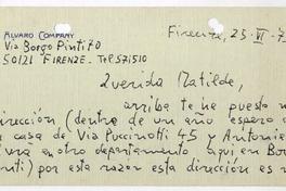 [Carta] 1975 junio 25, Firenze, [Italia] [a] Querida Matilde [manuscrito] Alvaro [Company].