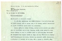 [Carta] 1975 septiembre 4, Buenos Aires [al] Señor Salvador Bussaca, Vice-Presidente de la Camara de Diputados [manuscrito] / Matilde Ladrón de Guevara. 1 hoja ; 28 cm. .