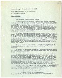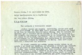 [Carta] 1975 septiembre 8, Buenos Aires [al] Señor ex-Presidente de la República Dr. Arturo Illia [manuscrito] Matilde Ladrón de Guevara.