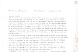 [Carta] 1975 septiembre 9, Ischia, Napoli [a] Querida Matilde [manuscrito] / Enrique [Company]. 1 hoja ; 20 x 23 cm. .