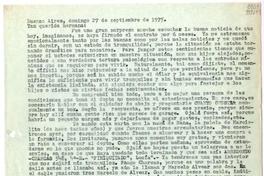 [Carta] 1975 septiembre 27, Buenos Aires [a] Tan querida hermana [manuscrito] / Matilde [Ladrón de Guevara]. 2 hojas ; 28 cm. .