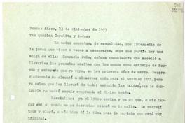[Carta] 1975 diciembre 13, Buenos Aires [a] Tan querida Carolita y todos [manuscrito] / Matilde [Ladrón de Guevara]. 1 hoja ; 28 cm. .