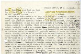 Papel perforado, dobleces rasgados. Membrete "Carrera-Sheraton Hotel".