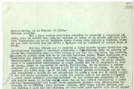 [Carta] 1976 febrero 13, Buenos Aires [a] Hermana querida [manuscrito] / [Matilde Ladrón de Guevara]. 3 hojas ; 28 cm. .