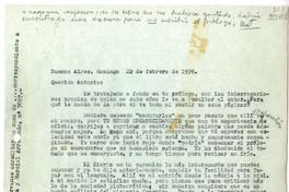 [Carta] 1976 febrero 22, Buenos Aires [a] Querido Antonio [manuscrito] Matilde [Ladrón de Guevara].