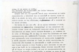 [Carta] 1976 abril 19, Lima [a] Director de "Excelsior", Julio Scherer [manuscrito] [Matilde Ladrón de Guevara].