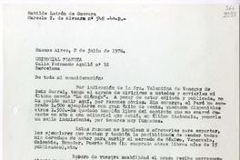 [Carta] 1976 julio 2, Buenos Aires [a] Editorial Planeta, Barcelona [manuscrito] / [Matilde Ladrón de Guevara]. 1 hoja ; 28 cm. .