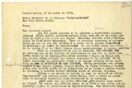 [Carta] 1977 marzo 15, Buenos Aires [a] Señor Director de la revista "Chile-América", Luis Silva Solar, Roma [manuscrito] [Matilde Ladrón de Guevara].