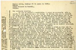 [Carta] 1977 junio 26, Buenos Aires [a] Señora Laura Allende de Pascal, México [manuscrito] Matilde L. de Guevara de Arredondo.