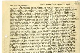 [Carta] 1977 agosto 4, Buenos Aires [a] Tan querida hermana [manuscrito] [Matilde Ladrón de Guevara].