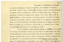 [Carta] 1977 agosto 17, Buenos Aires [a] Mi adorado chiquito [manuscrito] / Matilde [Ladrón de Guevara]. 1 hoja ; 28 cm. .