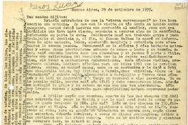 [Carta] 1977 septiembre 29, Buenos Aires [a] Tan amados hijitos [manuscrito] / Matilde [Ladrón de Guevara]. 2 hojas ; 28 cm. .